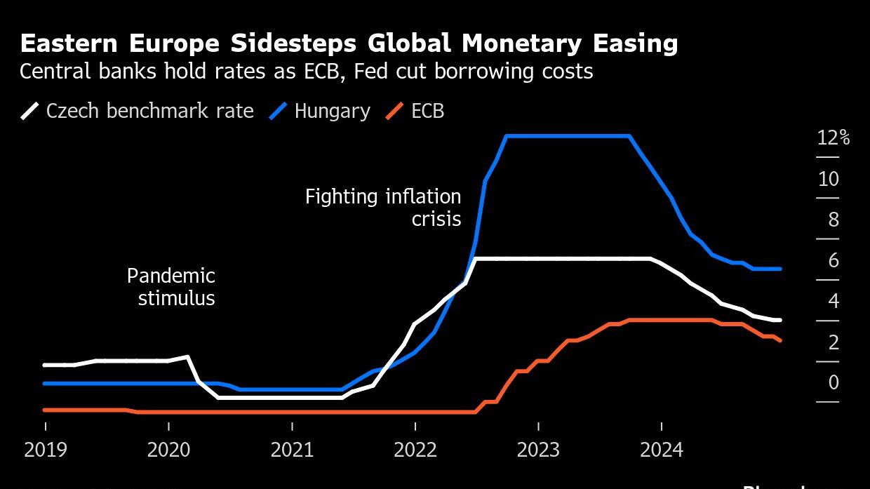 The move underscores a divergence between central and eastern European policymakers adopting a more cautious path and other major economies bent on easing.