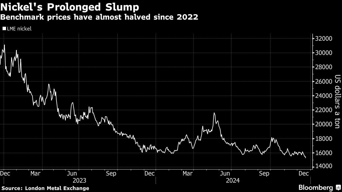 Global prices of the metal, used for electric vehicle batteries and to make stainless steel, crashed by 45% in 2023 and have failed to recover this year. Booming supply from Indonesia, which now accounts for more than half the world’s nickel output, and slower-than-expected demand growth have weighed on the market and forced some producers in other countries to shutter operations.