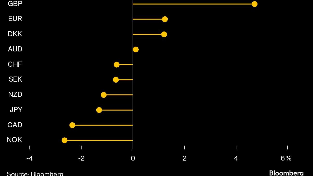 Against the dollar, the pound is already trading around 2.5% above $1.30 — the level strategists in a Bloomberg poll saw it ending the year at. While a further rise to $1.35 in the coming weeks is possible, Brad Bechtel, global head of foreign exchange at Jefferies in New York, said he’s “cautious” about a push higher.