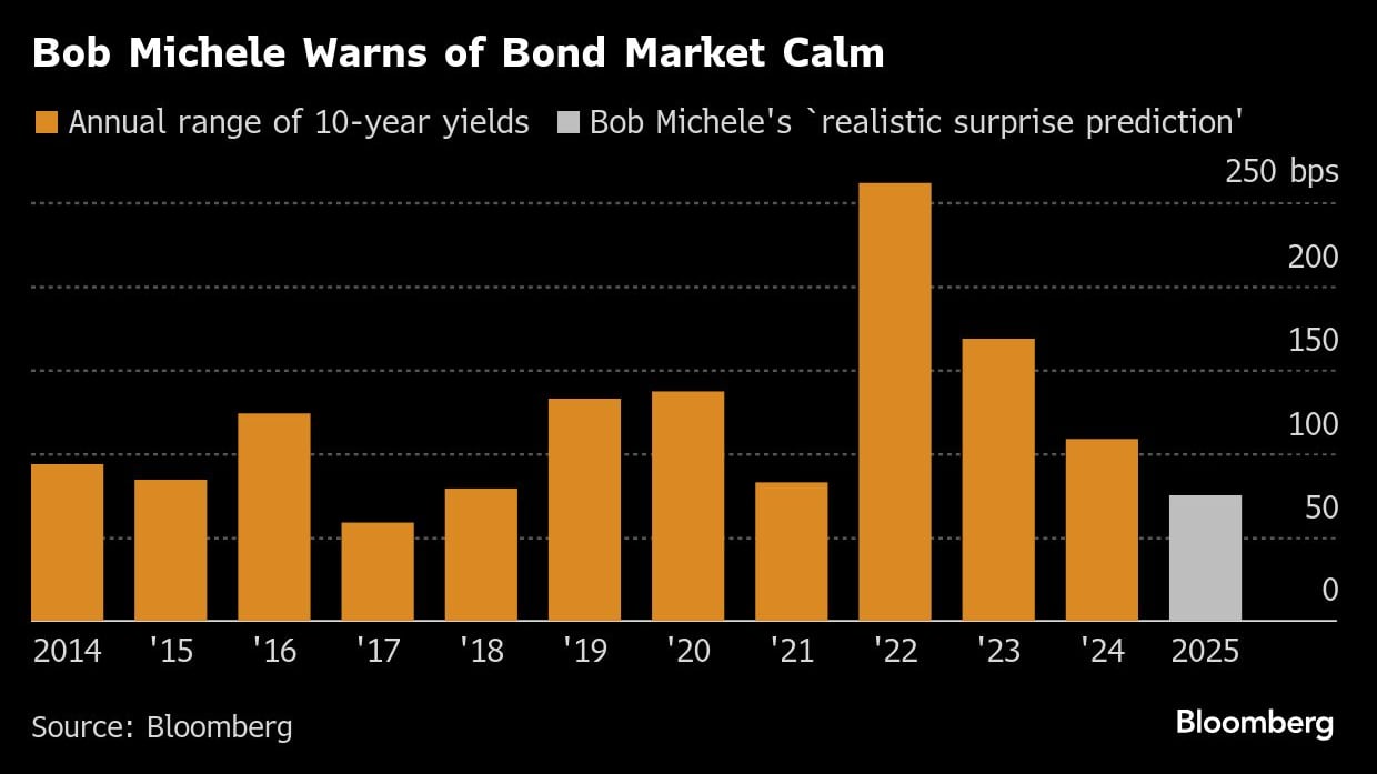 (Bloomberg) -- Bond-market veteran Bob Michele says there’s one scenario investors aren’t fully prepared for in 2025: the calmest Treasury market in nearly a decade.