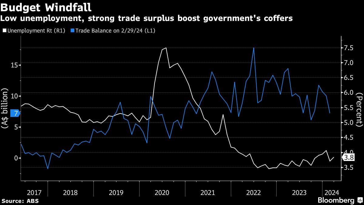 The center-left Labor government has run a tight fiscal policy since winning office in May 2022 to try to help the central bank bring down inflation, sparking a cost-of-living squeeze for Australians. It’s now hoping tax cuts beginning in July and potential interest-rate cuts will ease pressure on heavily-indebted households and spur voters to re-elect the government at a poll due by mid-2025.
