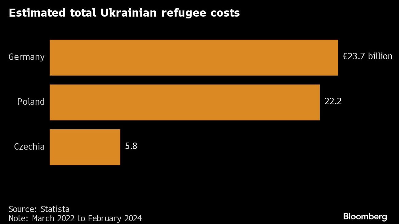 (Bloomberg) -- Germany, Poland and the Czech Republic asked the European Union for financial support to help cover the cost of hosting Ukrainian refugees since the three countries have taken in the lion’s share since Russia’s invasion.