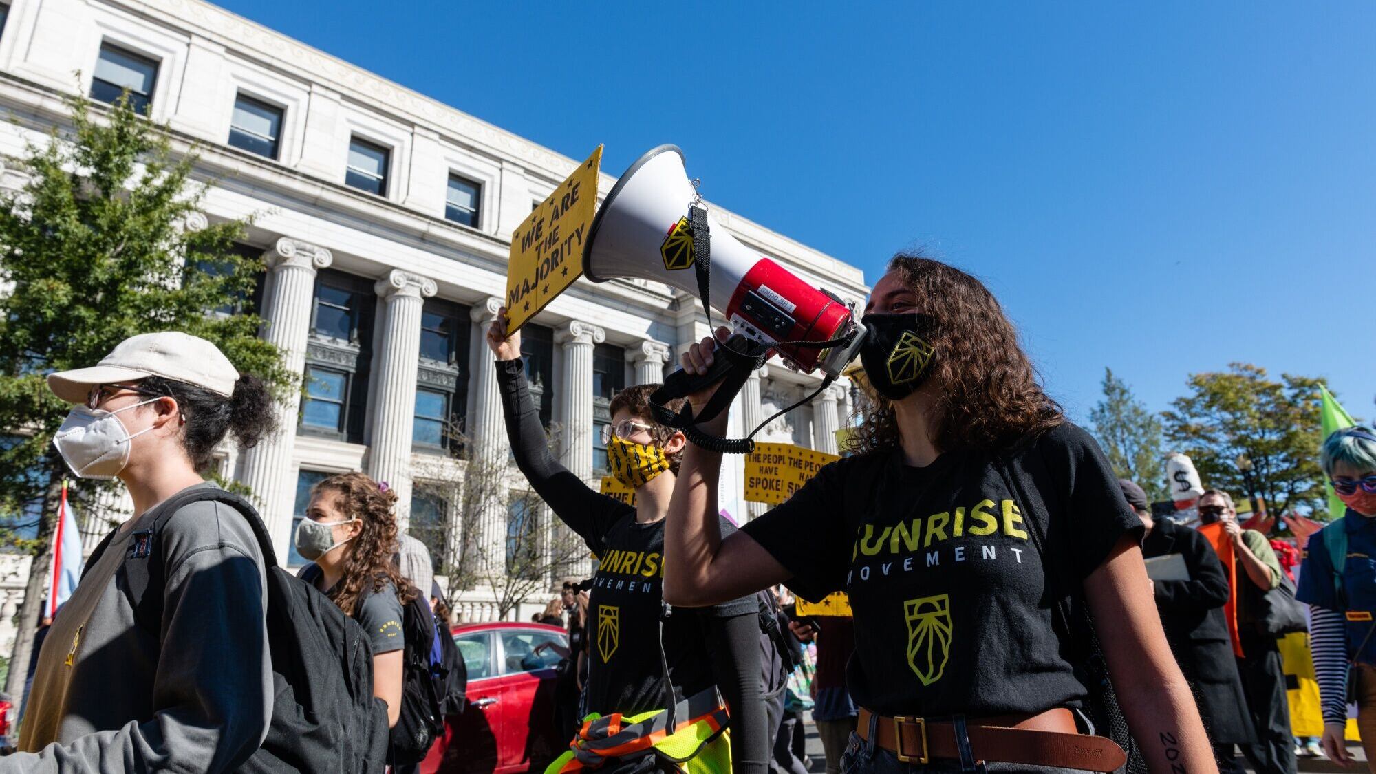 “The climate crisis won’t be solved by 55-year-old nonprofit bureaucrats in a cubicle farm on K Street,” he said, referring to a famous avenue for lobbyists in Washington.