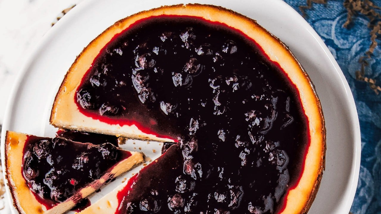 - To make the topping, combine all the ingredients in a saucepan over medium heat. Simmer for 6 minutes. Let cool before serving over the cheesecake. There is enough blueberry compote to put a good portion on top of the cheesecake and have some extra to add to individual servings.