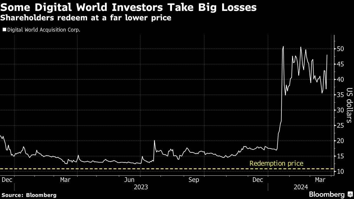 (Bloomberg) -- Some investors in the blank-check firm taking Donald Trump’s nascent media company public voluntarily took a 75% loss by pulling out of the deal.